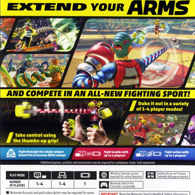 بازی Arms یک بازی مبارزهای است که توسط نینتندو ساخته و برای کنسول نینتندو سوئیچ در ماه ژوئن 2017 عرضه شده است. بازی با دیگر بازیهای مبارزهای متفاوت است و تا چهار بازیکن میتوانند با انتخاب کاراکتر خود و با استفاده از بازوهای بلند آنها، در یک محیط سه بعدی با هم بجنگند.#nintendo,#switch