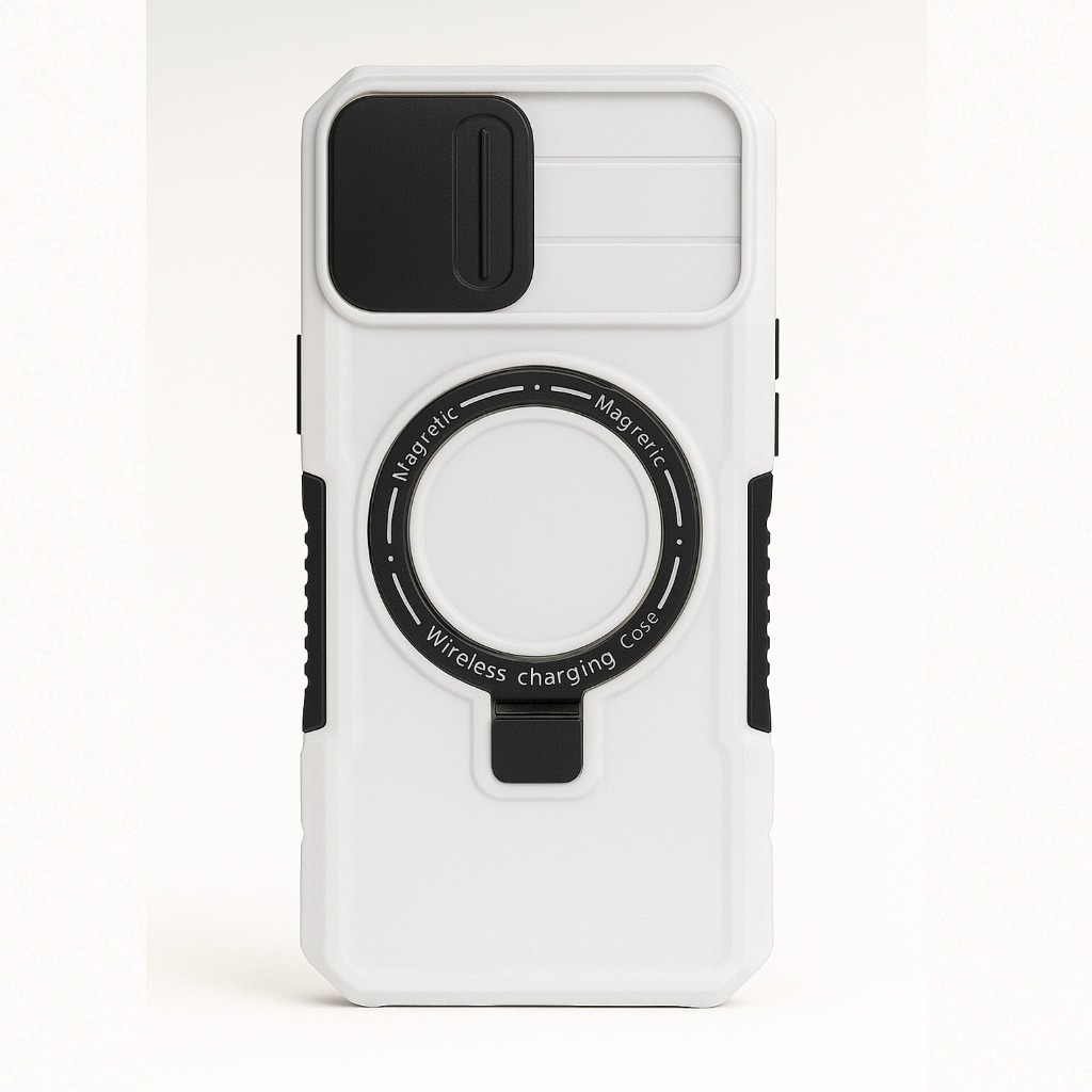 قاب آیفون استند شو طرح Armor از سری قابهای مقاوم و مدرن با طراحی صنعتی و قابلیت MagSafe، هم ظاهری قدرتمند به گوشیت میده و هم امنیتش رو تضمین میکنه.