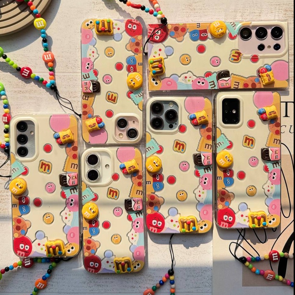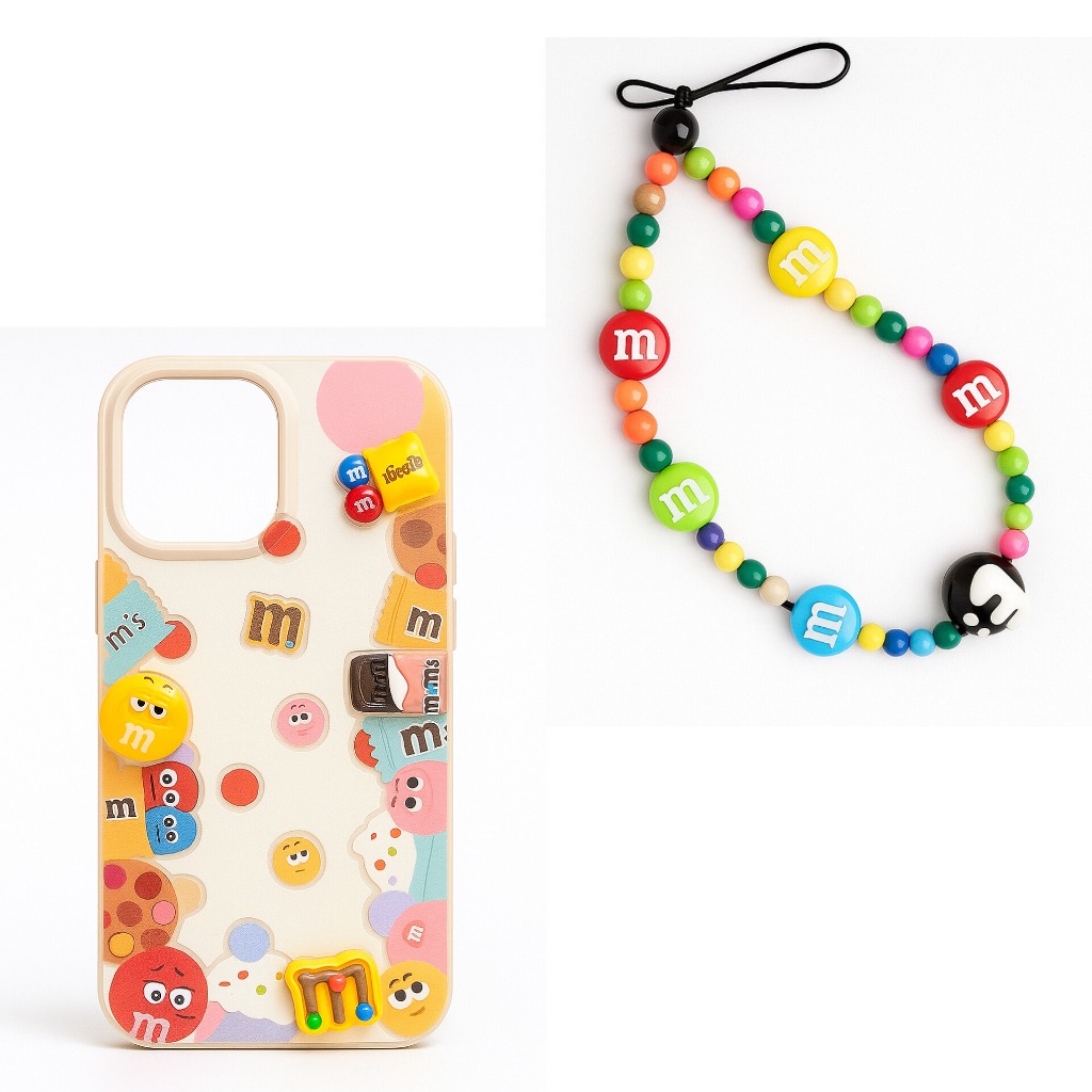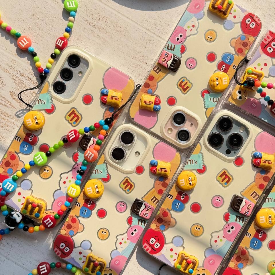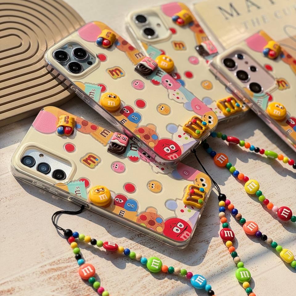 🍬 قاب آیفون طرح M&M برجسته به همراه آویز رنگی | خاص، فانتزی و پرانرژی 🎨