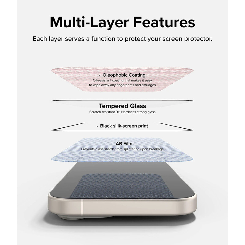 ⭐ ویژگیهای گلس SUPER-D آنتیاستاتیک تمامچسب آیفون 15